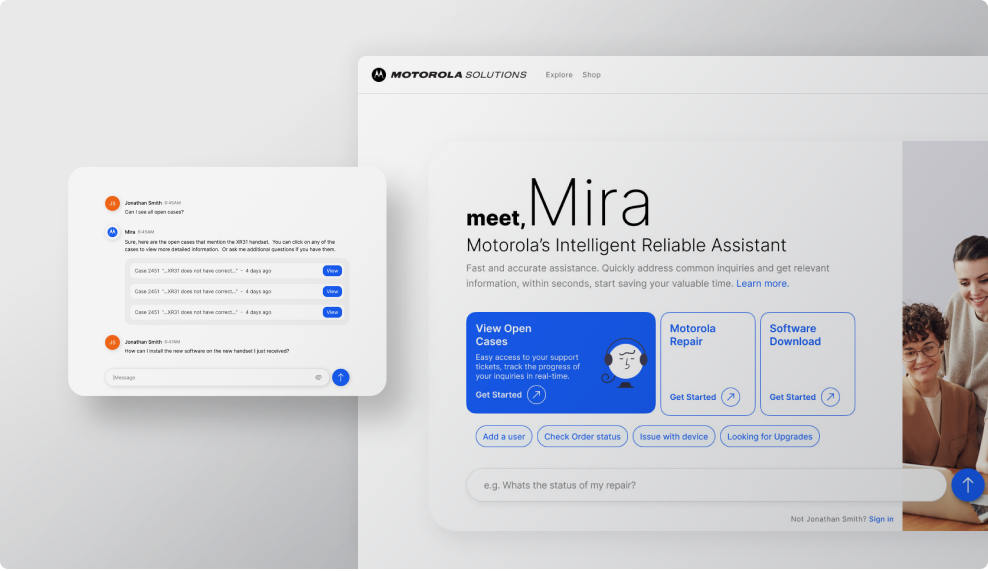 We steered Motorola Solutions pioneering GenAI integration, mapping out strategic investments in experiences for optimal outcomes. We focused on enhancing their self-service customer support—from product purchase to provisioning, and troubleshooting. We devised custom solutions that seamlessly integrated with their existing suite of tools and specialized systems aiming to offer Motorola's customers and staff swift access to historical data, actionable insights, and smart recommendations based on the immense amount of data at their disposal.